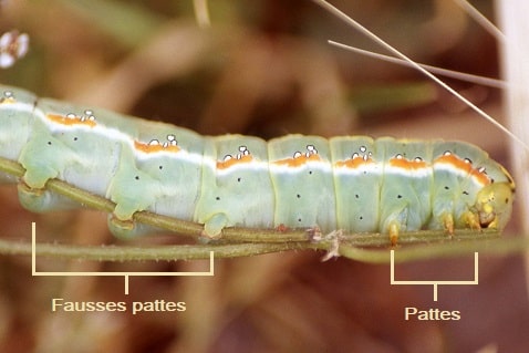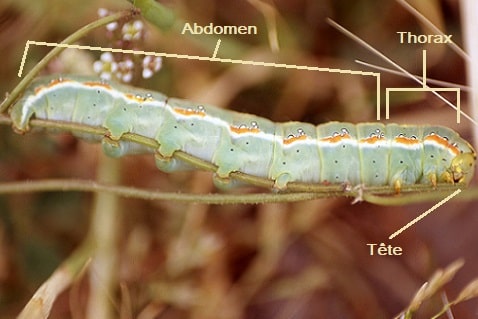 La larve de 10 à 12 mm de long présente une tête marron-orangée, des