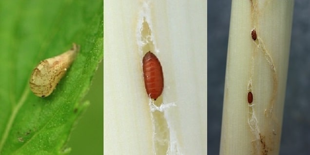 , dans le sol où a poussé la plante hôte au cours de la saison précédente. Les premières mouches éclosent vers la mi-avril.